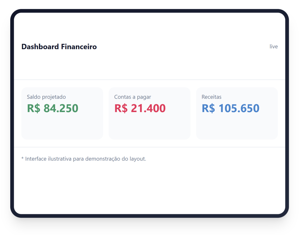 Em geral, nas primeiras 4 a 6 semanas já entregamos fluxo de caixa confiável e redução de ruídos operacionais.